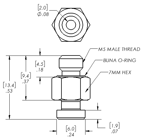 Description: M5 female fitting for PFG, PJG 5-15mm cups