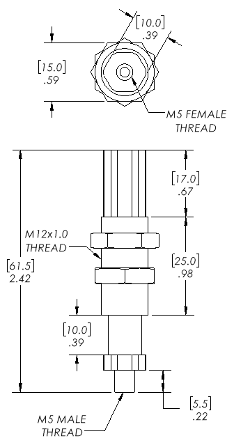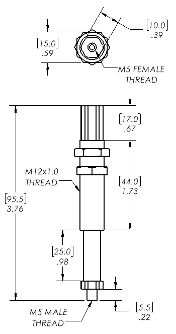 M5 male lelvel compensator with 25mm stroke. Non-rotating