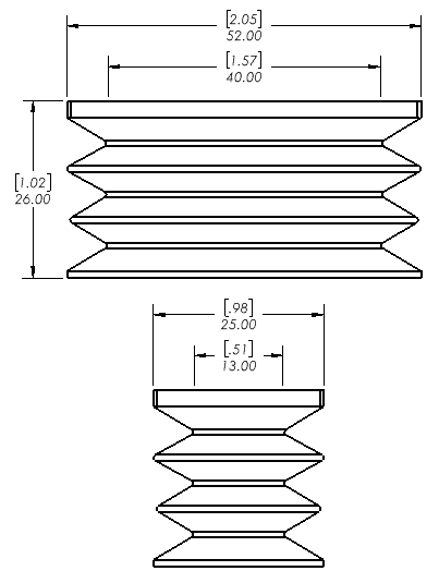 15mm x 25mm Silicone oval bellows suction cup. 60 Shore A